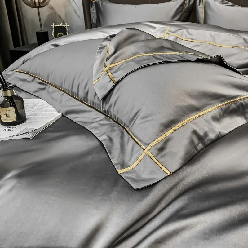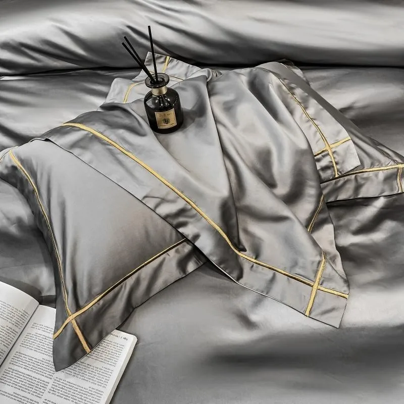 Product Name: Bordo In Nastro Ultra Morbido 4 Pezzi Set Copripiumino Biancheria Da Letto Queen King Lussuoso Copripiumino In Cotone Egiziano Federe Per Lenzuola