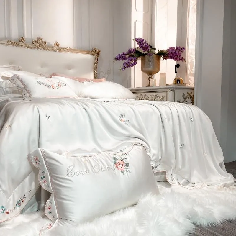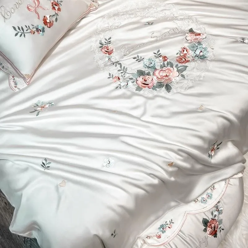 Special Offer Lusso 4/7Pcs Set Copripiumino Bianco Ricamato 600TC Set Copripiumino In Seta Tencel Lenzuolo Federe Queen King Size Discount (31%OFF) Today!