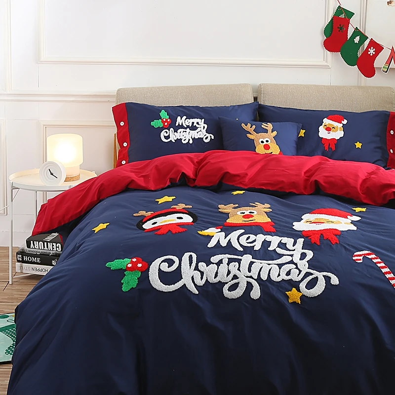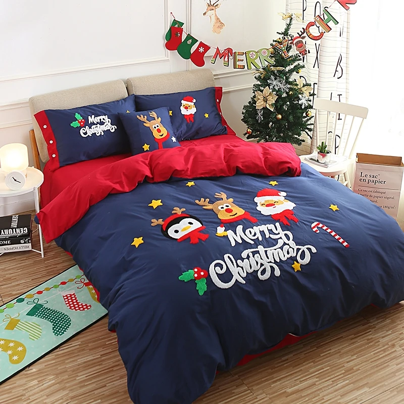 Special Offer 3/4/6 Pcs Twin Queen King Size Rosso Blu Natale Capodanno Set Biancheria Da Letto Adulti Bambini Copripiumino Lenzuolo Set Federa Regali Discount (30%OFF) Today!