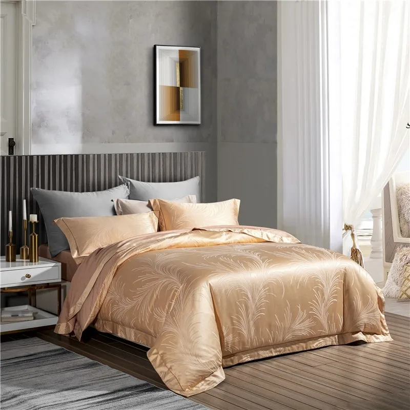 Product Name: 600TC Tencel Set Copripiumino In Morbido Cotone Jacquard Setoso Queen King 4 Pezzi Set Biancheria Da Letto Di Lusso Copripiumino Lenzuolo Federa
