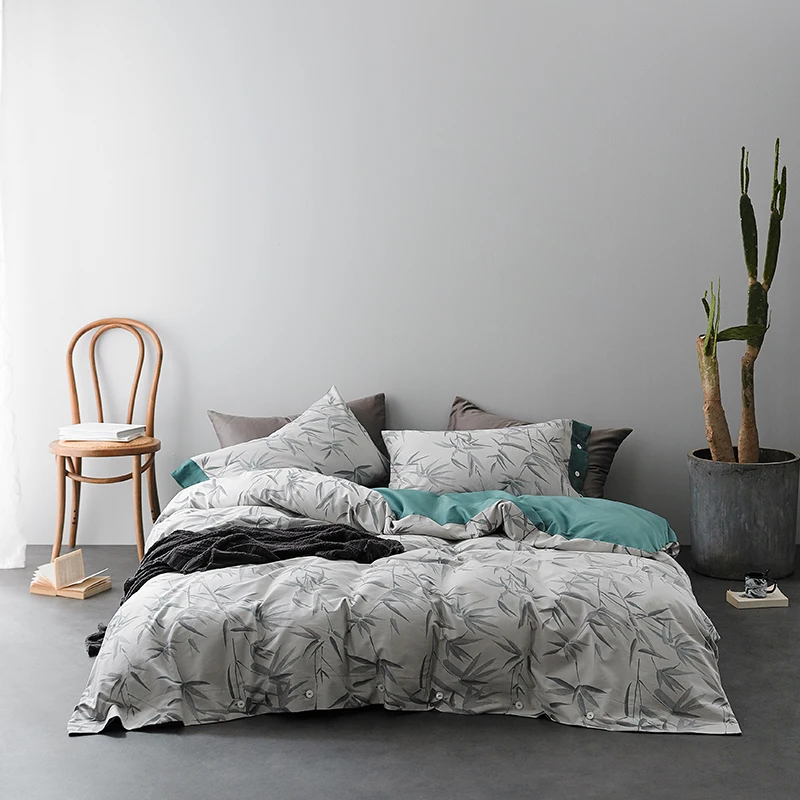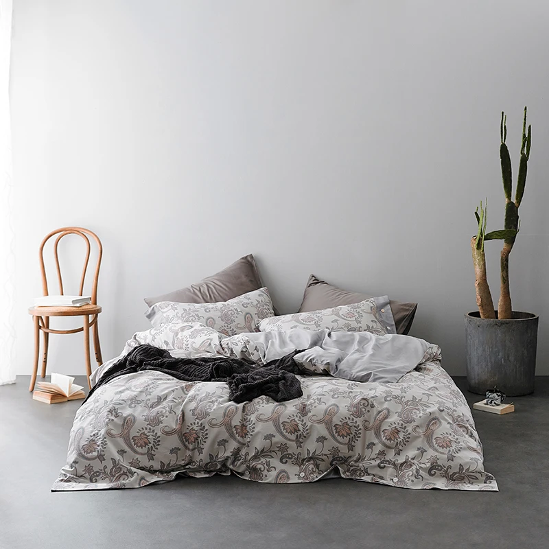 Product Name: Paisley Stampato Grigio Lusso Copripiumino Lenzuolo Fodere Per Cuscino 4 Pezzi Set Biancheria Da Letto Damasco Bohémien 600TC Tessuto Di Cotone Morbido Biancheria Da Letto