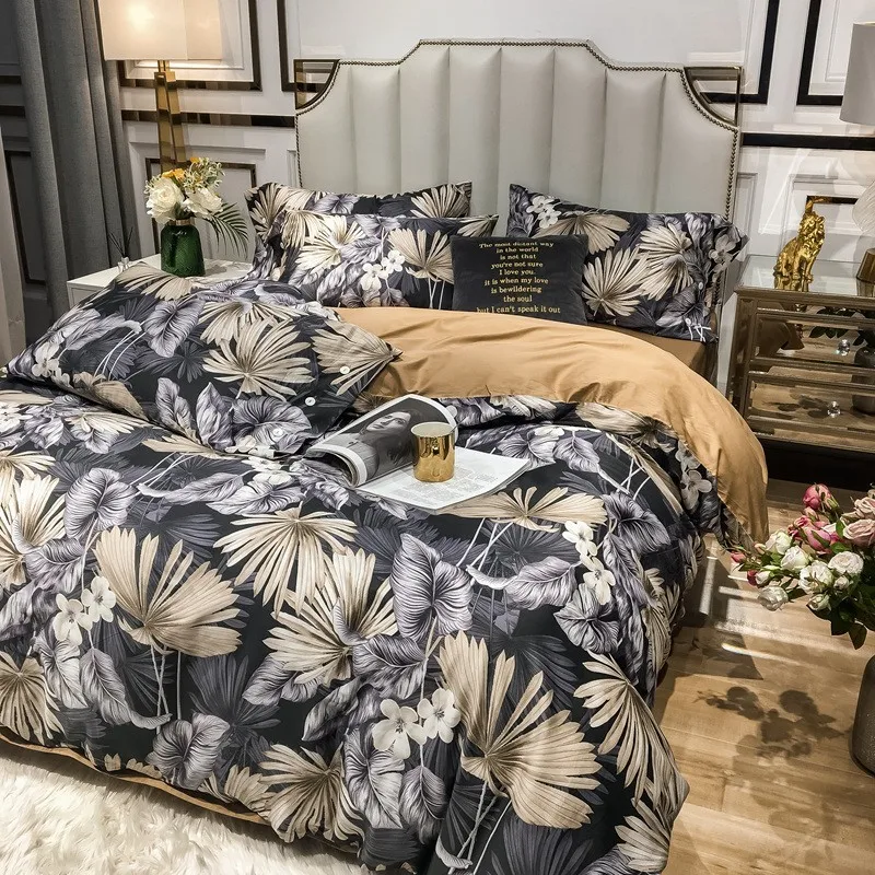 Special Offer Set Copripiumino 4 Pezzi 100% Cotone Egiziano Morbido King Size Foglie Set Biancheria Da Letto Floreale 1 Copripiumino 1 Lenzuolo 2 Federa Discount (45%OFF) Today!