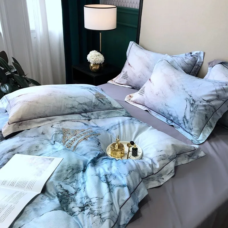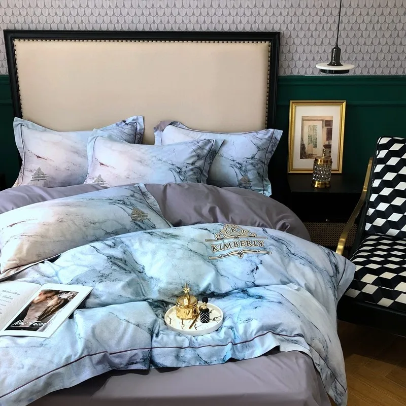 Product Name: Set Di Biancheria Da Letto Chic Di Lusso Stampato In Marmo Grigio 1000TC Copripiumino Morbido In Cotone Egiziano Lenzuolo Federe Queen King Size 4 Pezzi