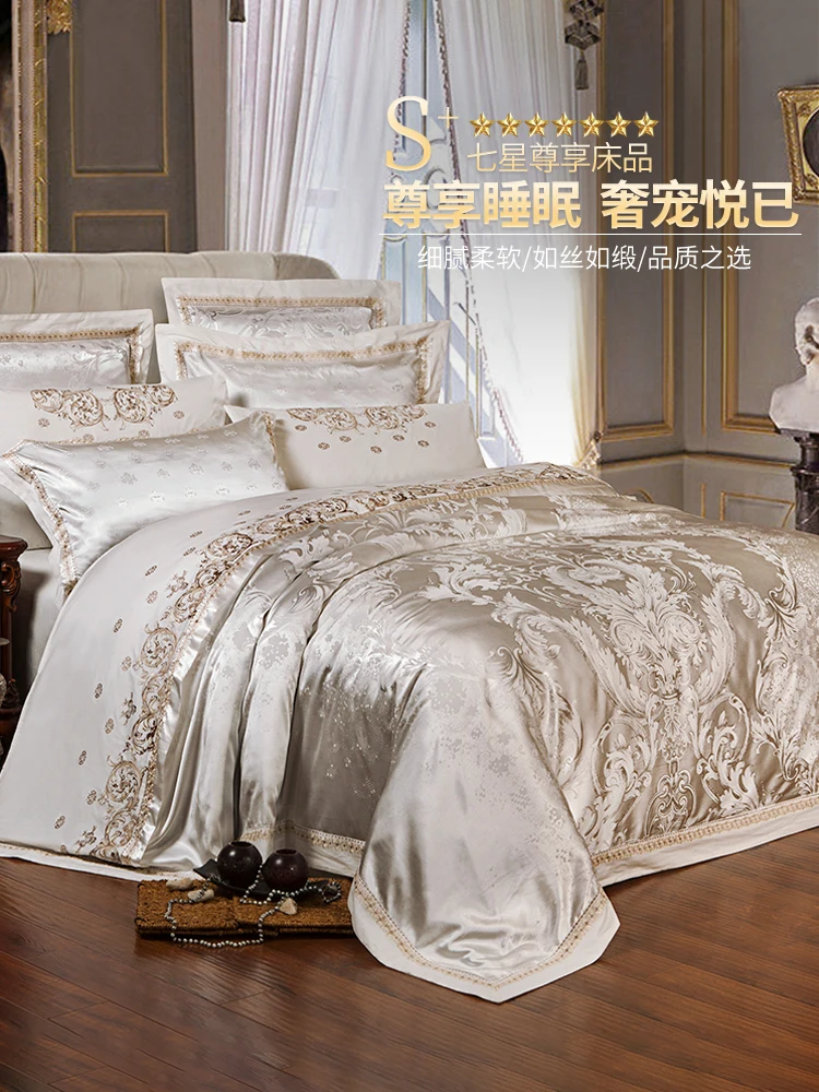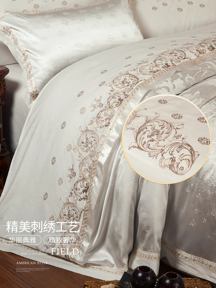 Product Name: Set Di Biancheria Da Letto Jacquard In Raso Di Lusso Dorato Argento Set Di Letti Da Ricamo Copripiumino Set Di Lenzuola Federa 28