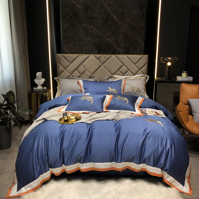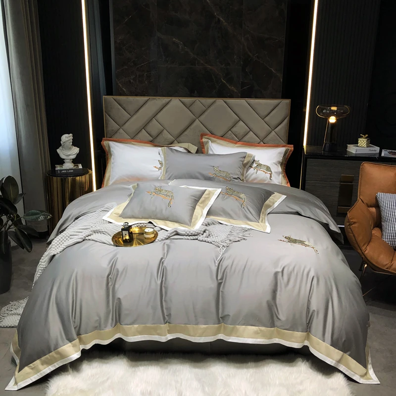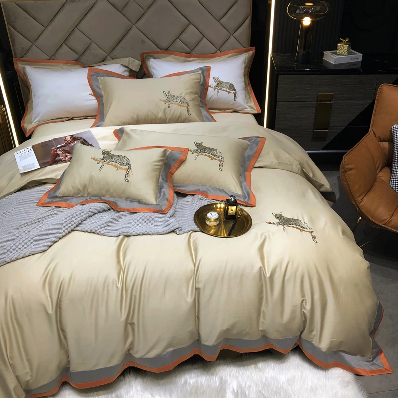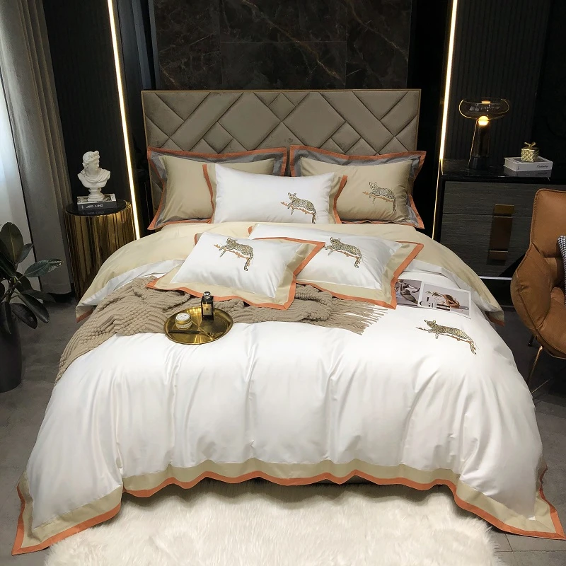 Special Offer Set Biancheria Da Letto Di Lusso Con Ricamo Leopardo Bianco/champagne Set Copripiumino In Cotone Egiziano 1000TC Federe Per Lenzuola 4 Pezzi Tessili Per La Casa Discount (31%OFF) Today!
