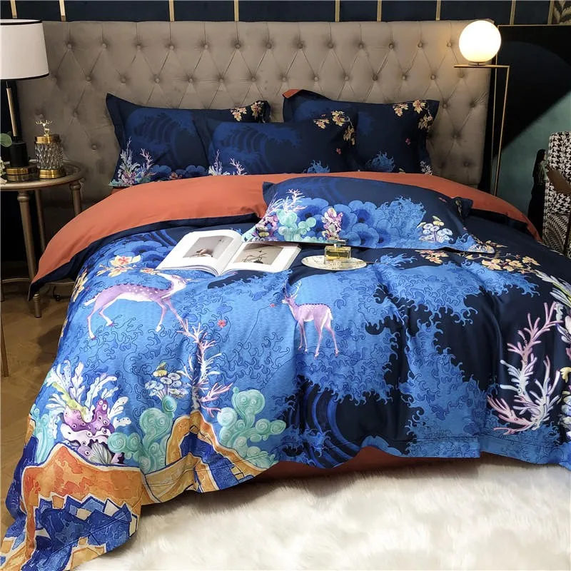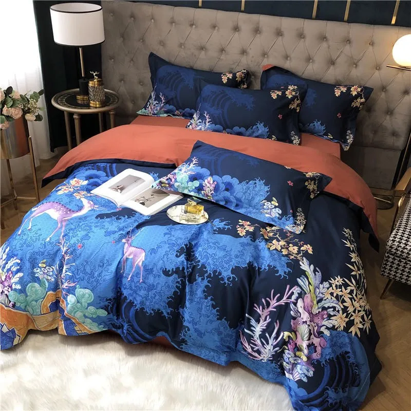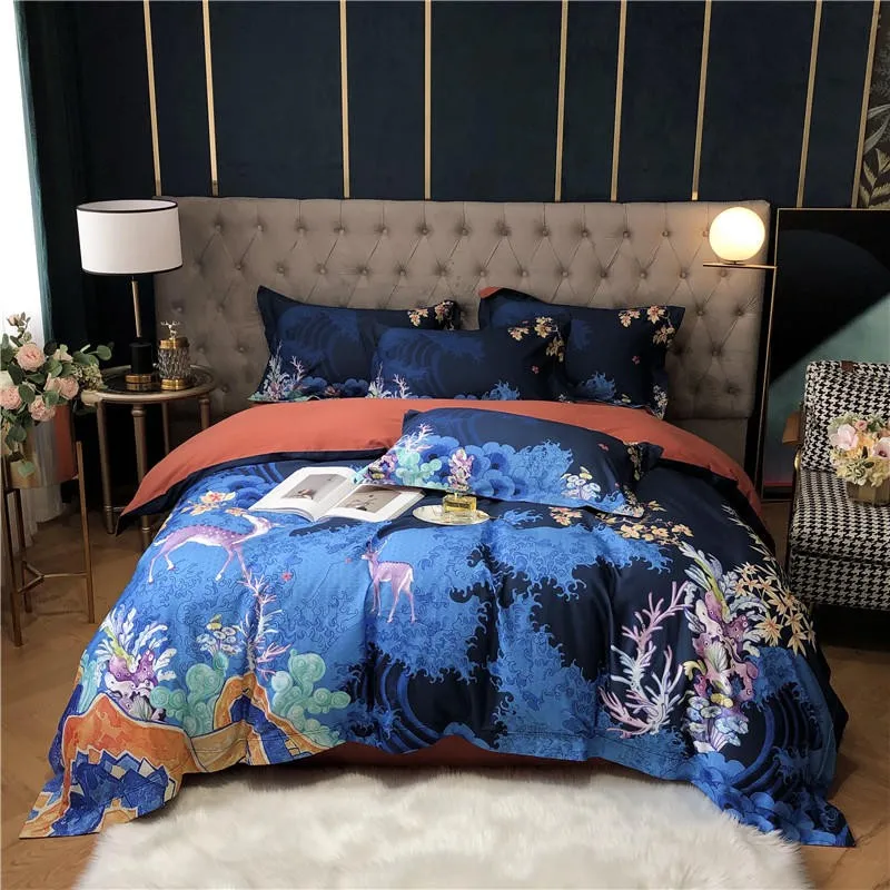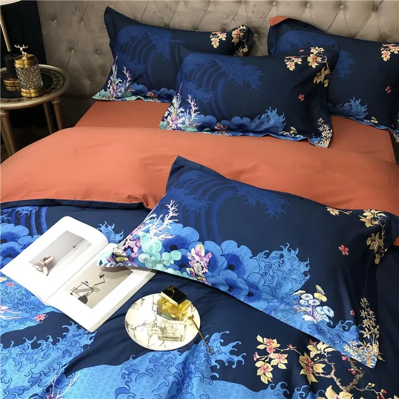 Product Name: Set Di Biancheria Da Letto Vintage Con Fiori Di Arte Vintage 100% Cotone Egiziano Spazzolato Copripiumino Morbido Lenzuolo 2 Federa Queen King Size 4 Pezzi