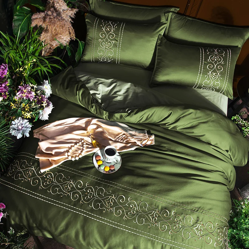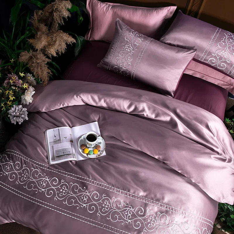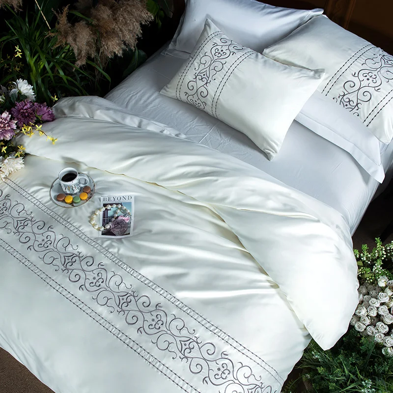 Product Name: Set Biancheria Da Letto In Seta Imitazione Cotone Bianco Argento Rosa Set Letto Matrimoniale King Size Di Lusso Lenzuola Set Copripiumino Ricamo In Lino
