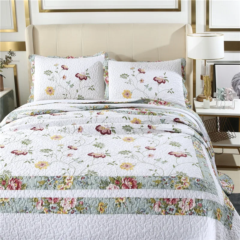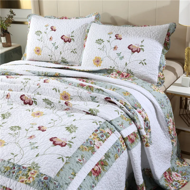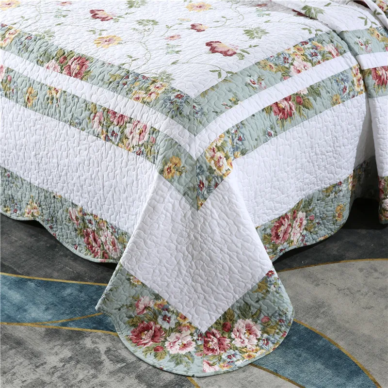 Special Offer Nuova Pianta Floreale Ricamo Patchwork Trapunta Full Queen King Size 3 Pezzi Puro Cotone Lenzuolo/copriletto/copriletto покрывало HY Discount (30%OFF) Today!