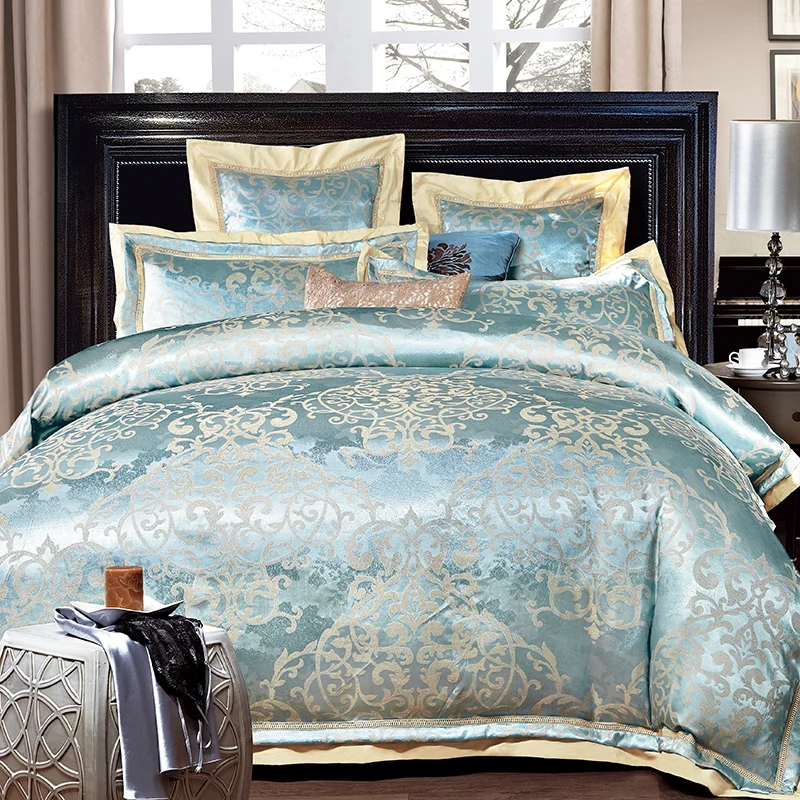 Product Name: Set Biancheria Da Letto Di Lusso Jacquard Blu Dorato Set Letto Matrimoniale King Size Copripiumino In Raso Stile Europeo Copriletti Lenzuola