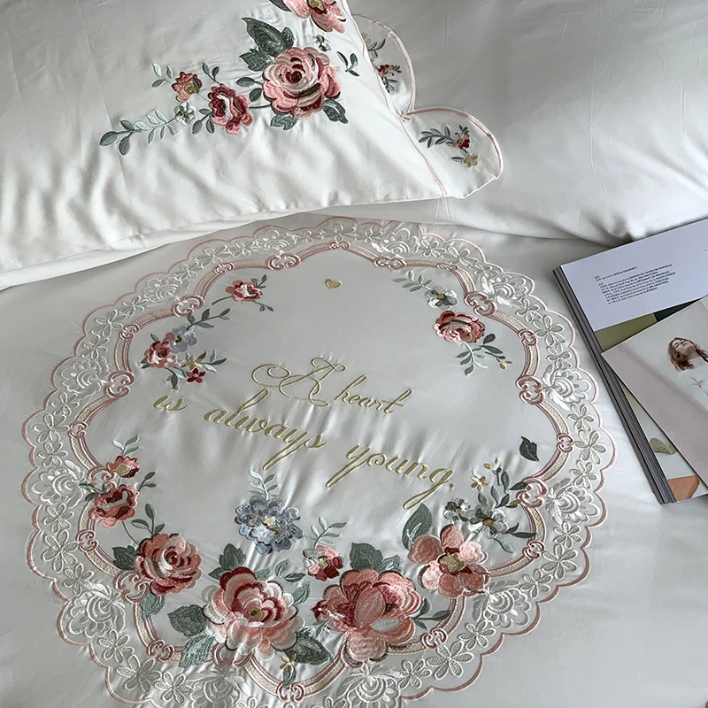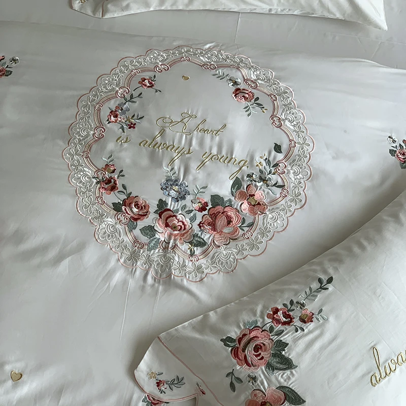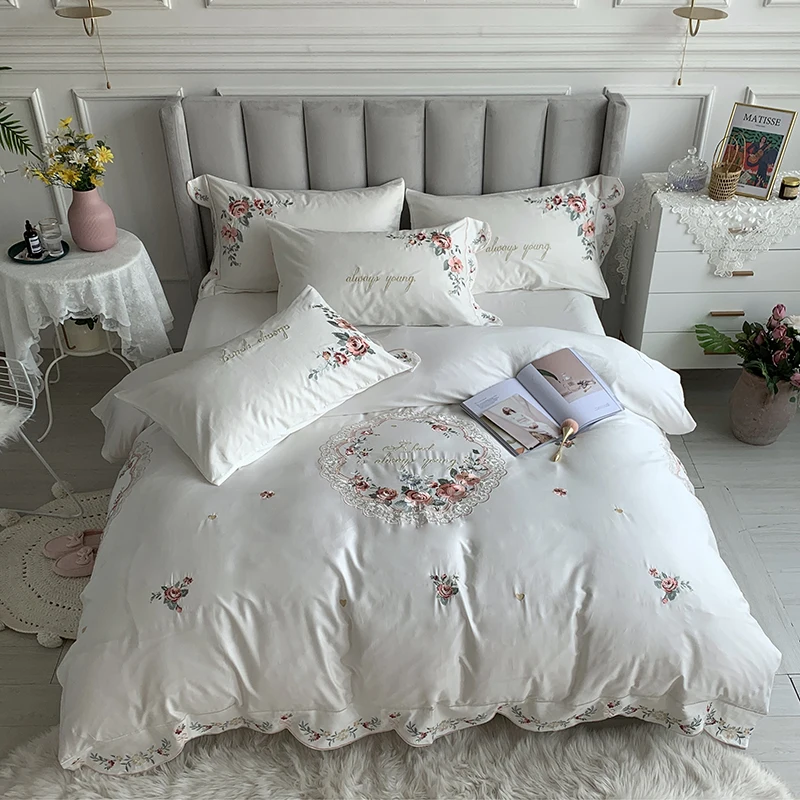 Special Offer Lusso Chic Fiori Ricamo Set Biancheria Da Letto Bianco 600TC Cotone Egiziano 1 Copripiumino 1 Lenzuolo 2 Federa Queen King 4 Pezzi Discount (40%OFF) Today!