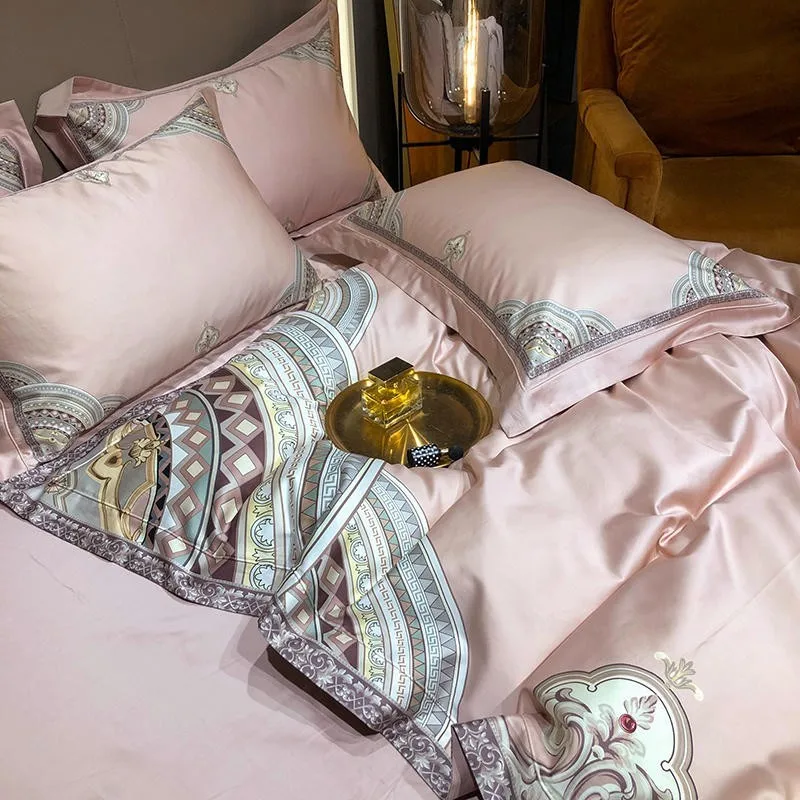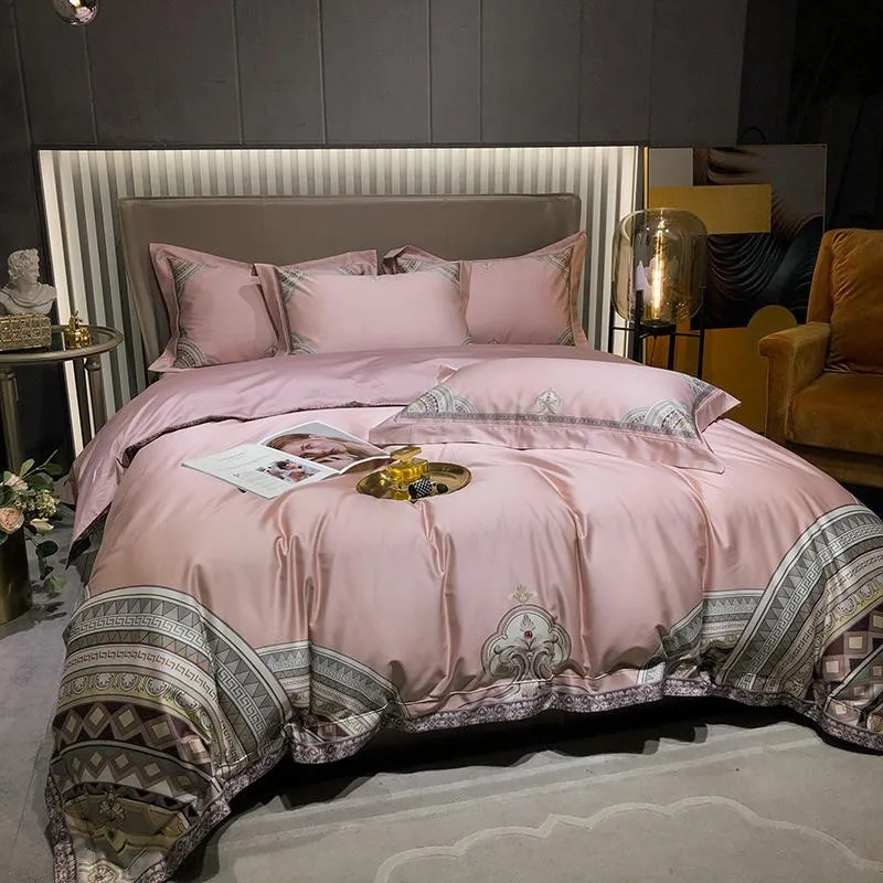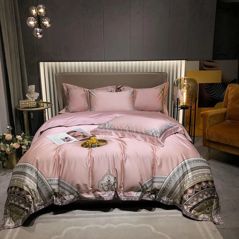 Product Name: Set Biancheria Da Letto Modello Di Lusso Vintage 1000TC Cotone Egiziano Setoso Morbido Copripiumino Set Lenzuola Federe Queen King Size 4 Pezzi