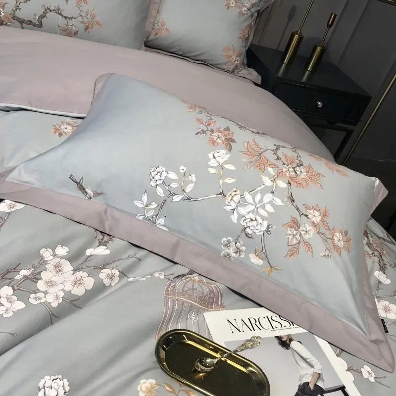 Product Name: Set Copripiumino Fiori Da Giardino Vintage Con Cerniera Set Biancheria Da Letto Di Lusso Copripiumino In Cotone Egiziano Federe Per Lenzuola