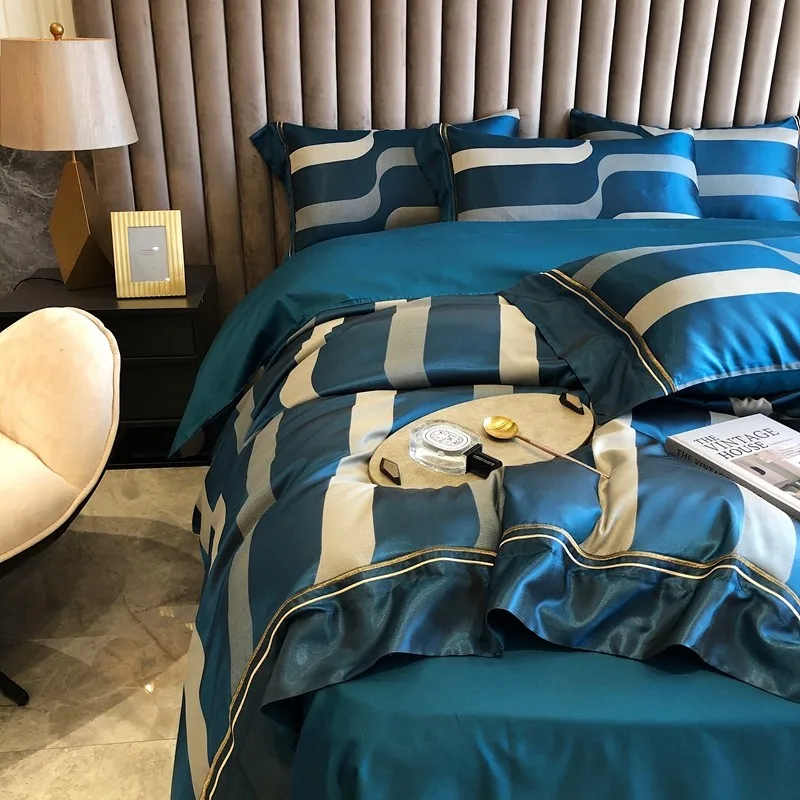 Product Name: Copripiumino A Righe Ticchettio Verticale Rosso Blu Brillante Biancheria Da Letto Setosa In Cotone Egiziano Satinato Federe Per Lenzuola Matrimoniale King Size