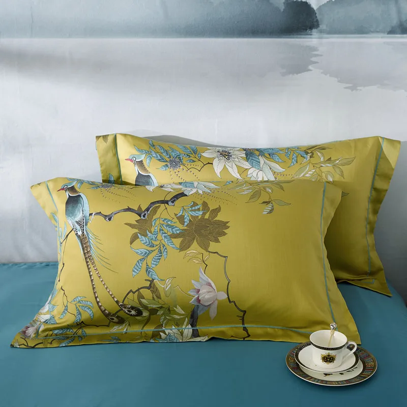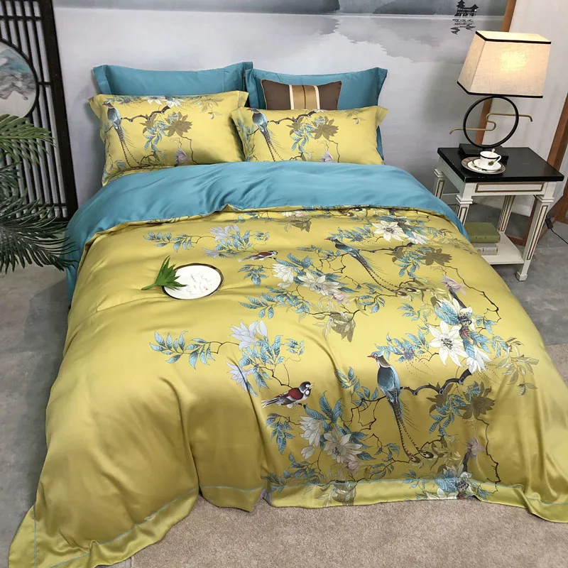 Special Offer Giallo Chinoiserie Chic Blossom Copripiumino Uccelli E Rami Di Alberi Set Di Biancheria Da Letto Traspirante In Morbida Seta Tencel Lenzuolo Per L'estate Discount (45%OFF) Today!
