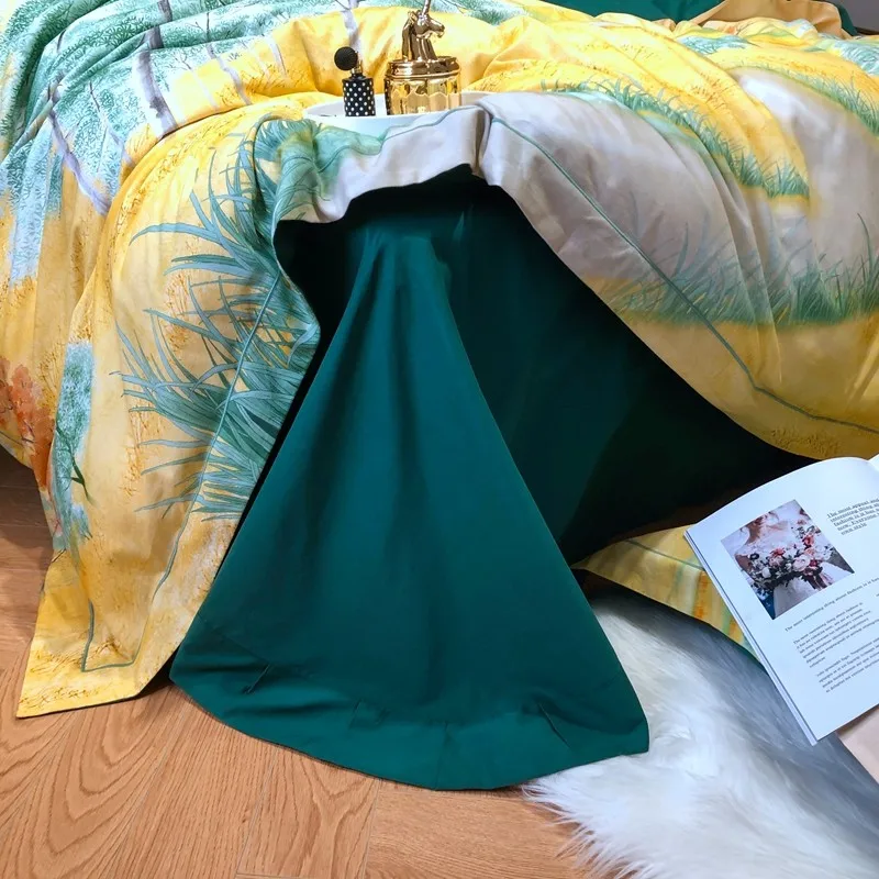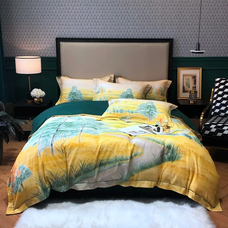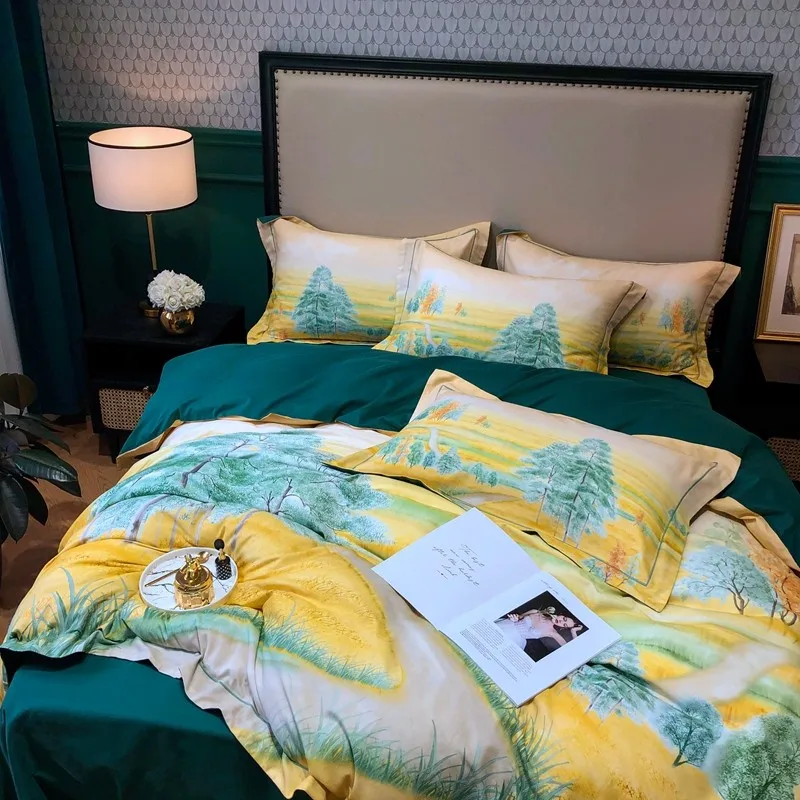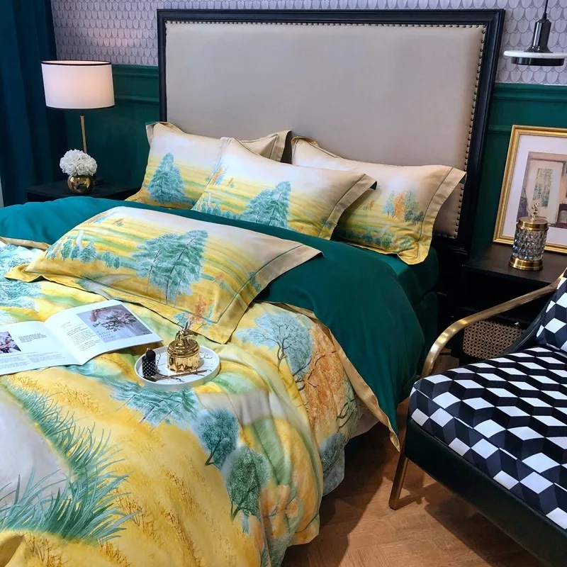 Product Name: Chic Forest Leaves Alberi Set Copripiumino Stampato Set Biancheria Da Letto Morbido In Cotone Egiziano Copripiumino Matrimoniale King Lenzuolo 2 Federe