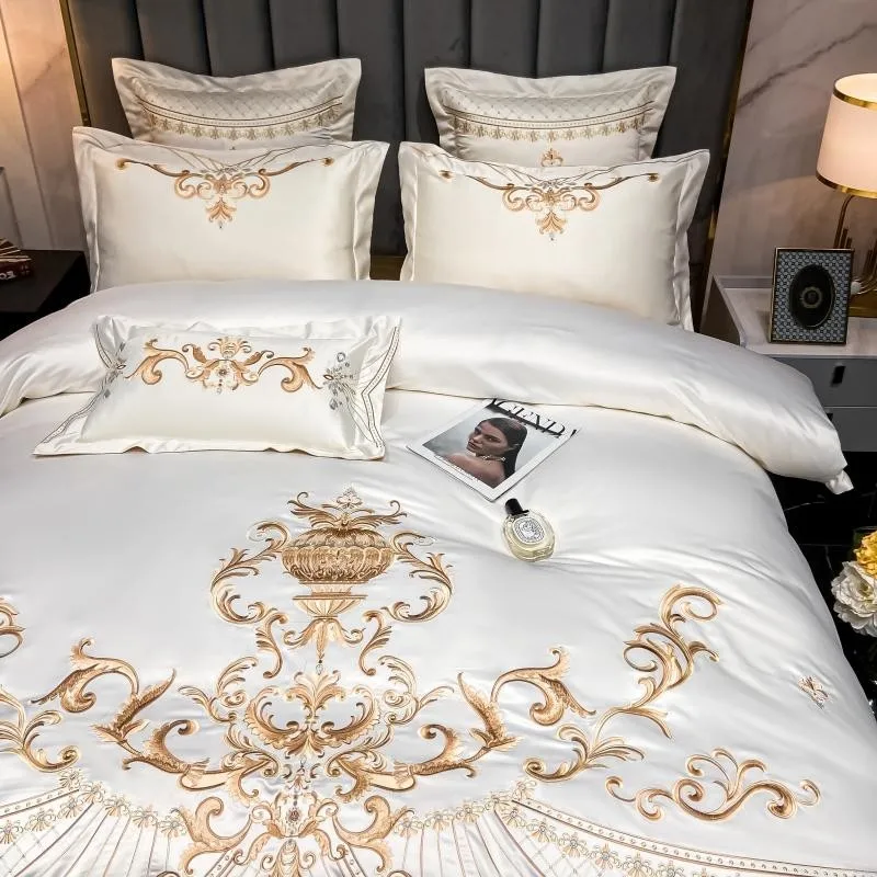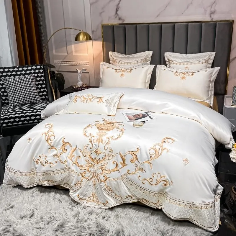 Special Offer 4 Pezzi Queen King Size Raso Ricamo Biancheria Da Letto Di Lusso In Stile Neocassico Europeo Copripiumino Set Con 1 Pz Lenzuolo 2 Federa Discount [NEW!!] Today!