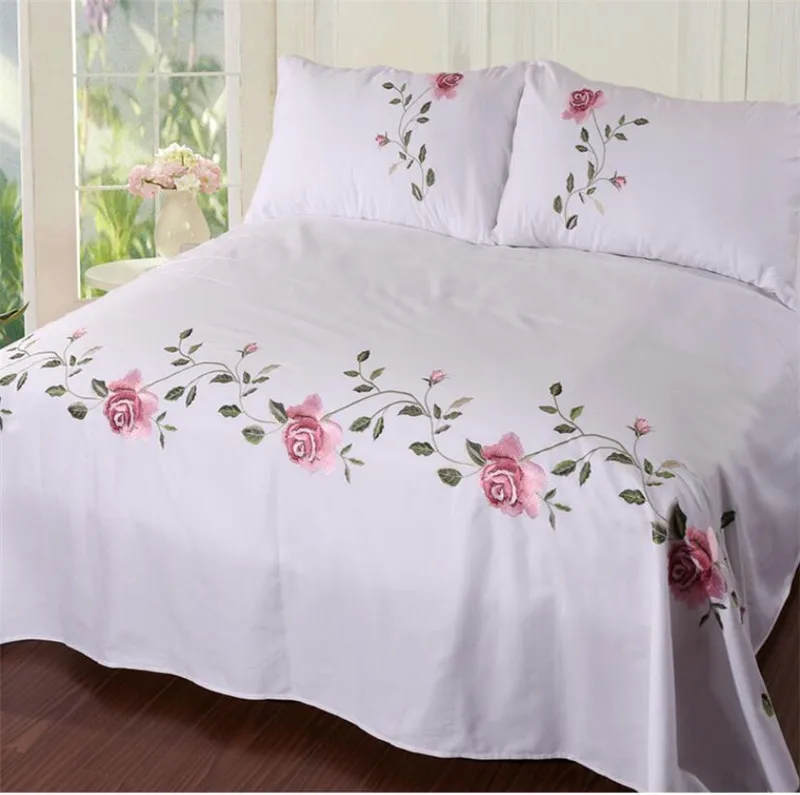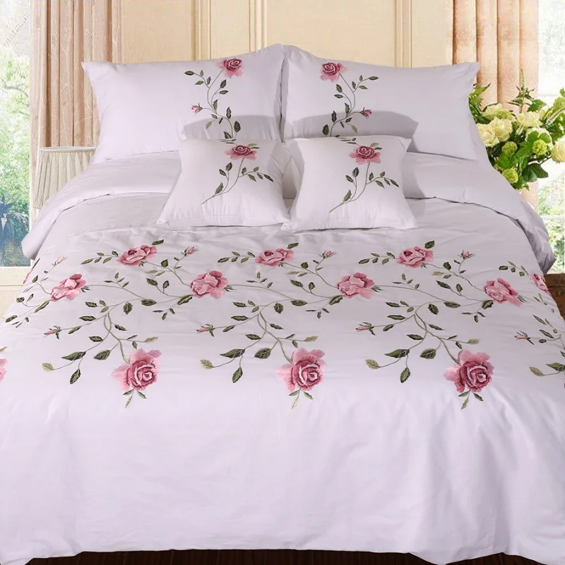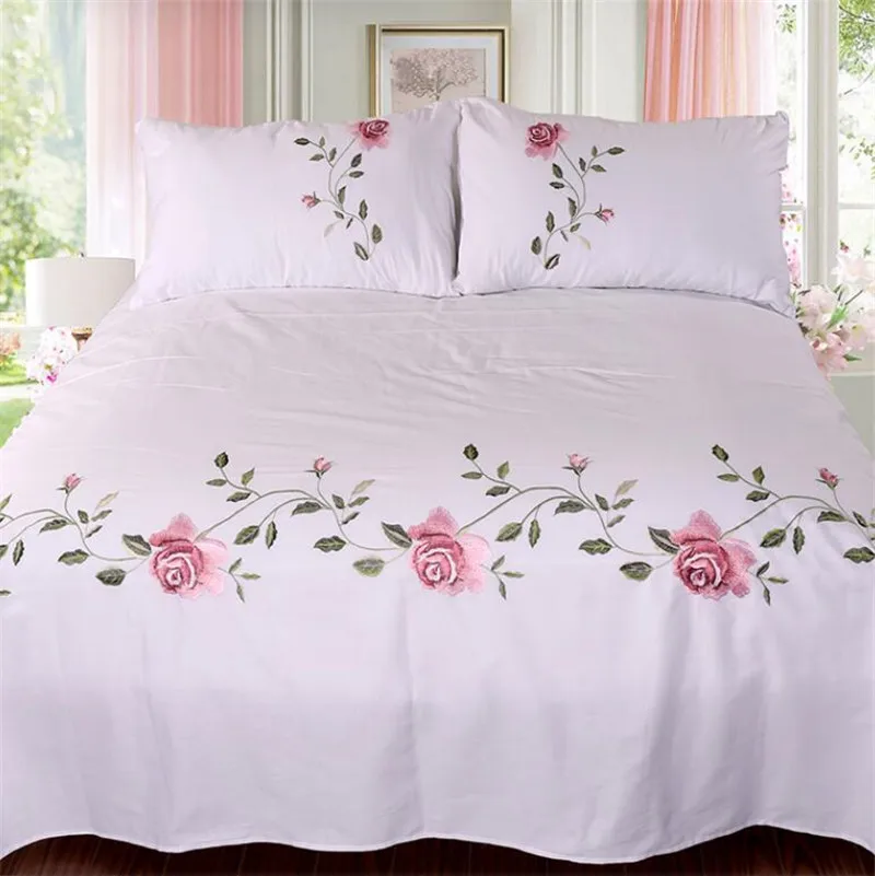 Special Offer Set Biancheria Da Letto In Morbido Cotone Premium Fiori Chic Foglie Ricamo Bianco Rosa Grigio Copripiumino Lenzuolo Matrimoniale Matrimoniale King Size Discount (43%OFF) Today!