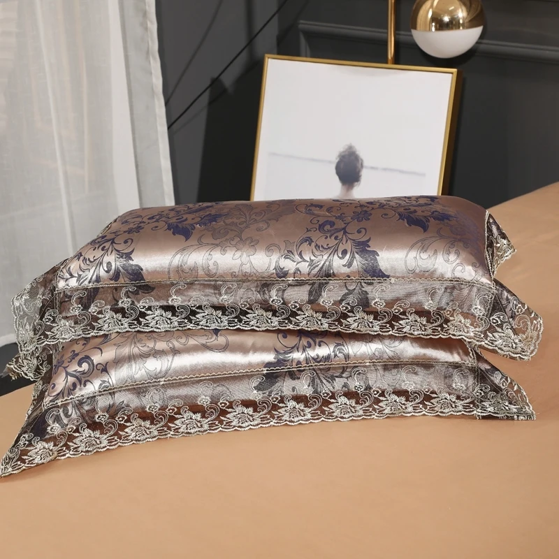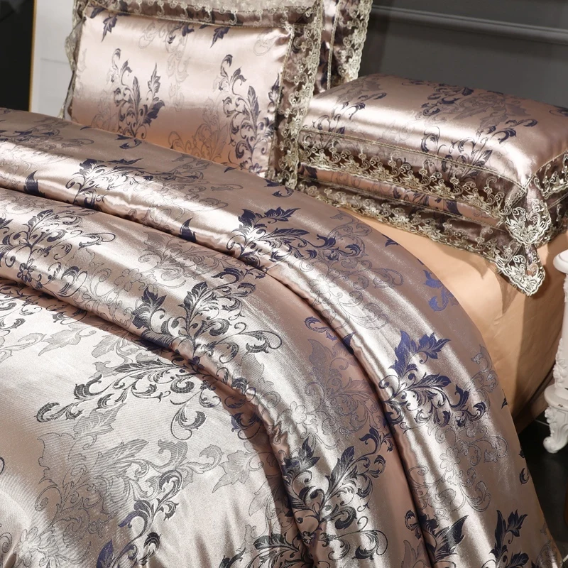 Product Name: Set Di Biancheria Da Letto In Raso Di Seta Di Lusso Set Di Copripiumini In Pizzo Di Cotone Color Argento Dorato 4 Pezzi Set Di Lenzuola Queen/king Size 4 Pezzi