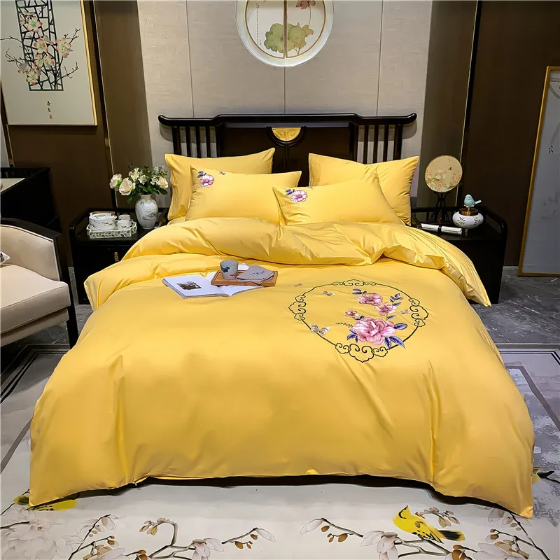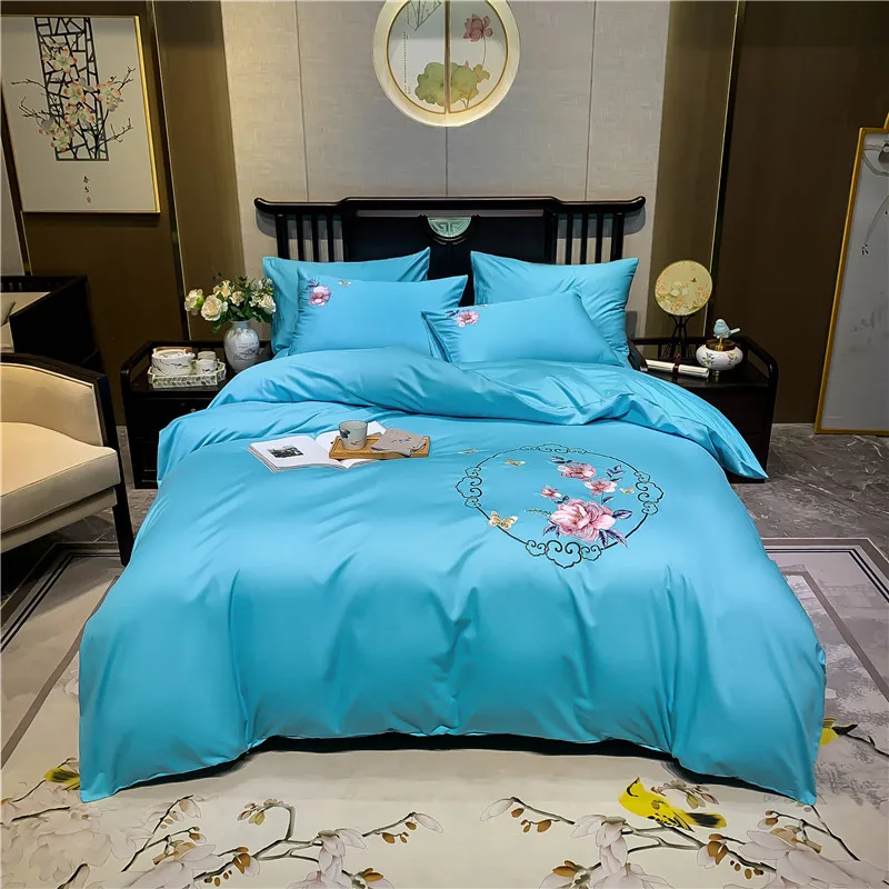 Product Name: Set Biancheria Da Letto Di Lusso Con Ricamo In Piuma Di Cotone Egiziano 100% Set Copripiumino Doppio Lenzuolo Con Angoli Federa Tessili Per La Casa