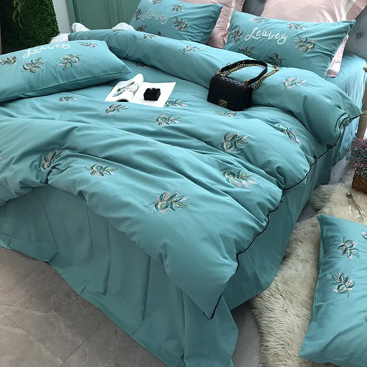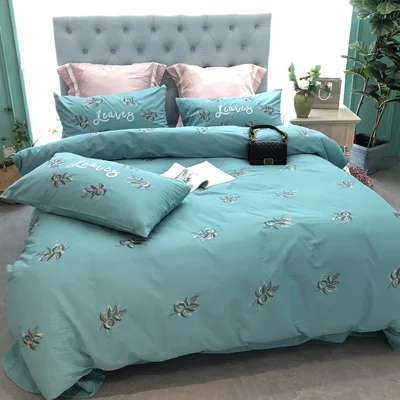 Product Name: Nuovo Blu Di Lusso Ricamato Morbido Addensare Levigatura Biancheria Da Letto In Cotone Set Queen Re Di Fiori Del Duvet Lenzuolo Copertina Set Federe 4 Pz