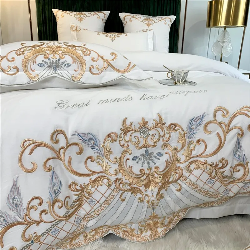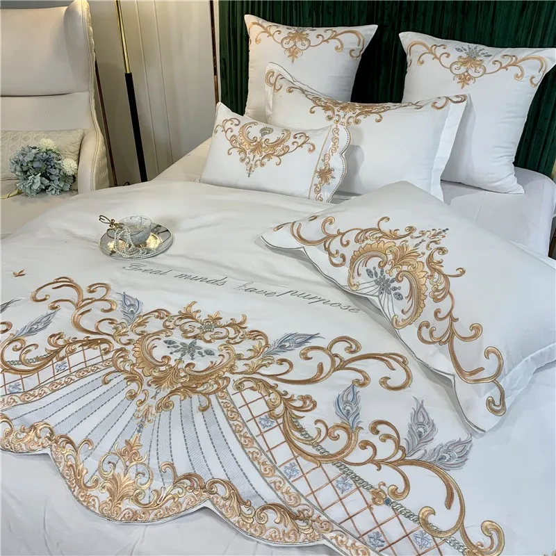 Special Offer Chic Ricamo 4 Pezzi Set Copripiumino Set Biancheria Da Letto In Cotone Spazzolato Morbido Bianco Copripiumino Lenzuolo Federa Matrimoniale King Size Discount (30%OFF) Today!