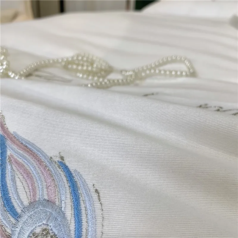 Product Name: Chic Ricamo 4 Pezzi Set Copripiumino Set Biancheria Da Letto In Cotone Spazzolato Morbido Bianco Copripiumino Lenzuolo Federa Matrimoniale King Size