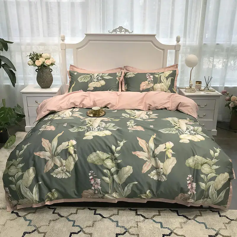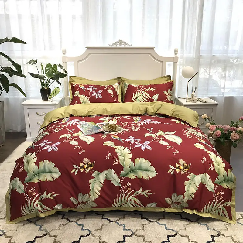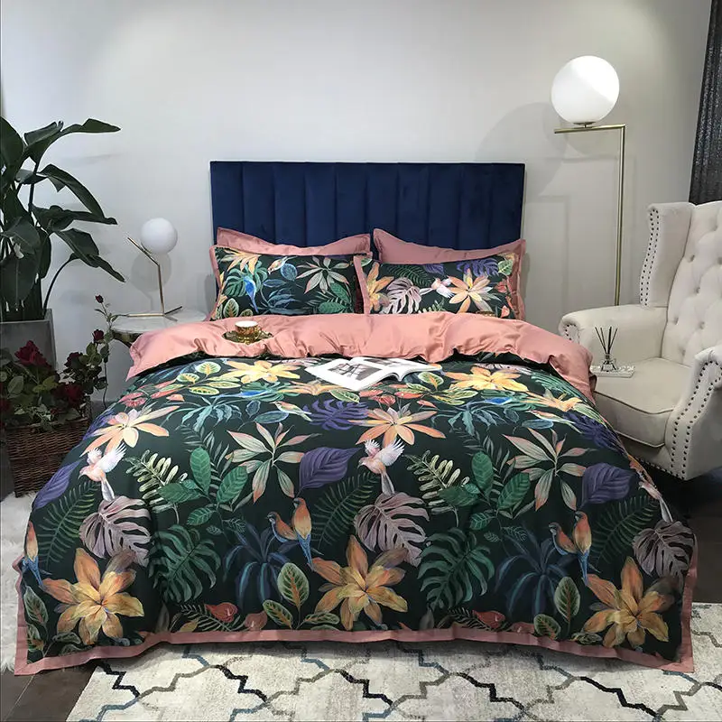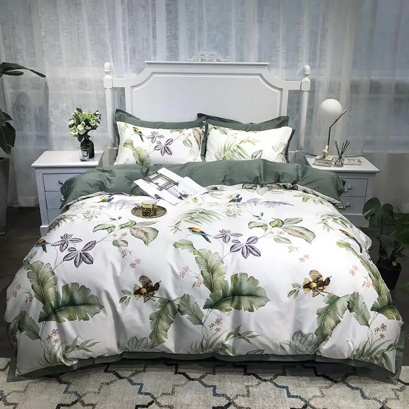 Product Name: Set Copripiumino Di Lusso Botanico Tropicale Uccelli Queen King Size 4 Pezzi Set Biancheria Da Letto In Cotone Egiziano Lenzuolo Con Angoli Fodere Per Cuscino