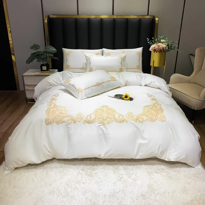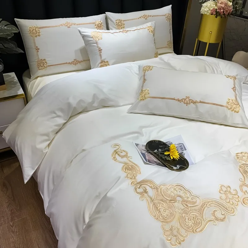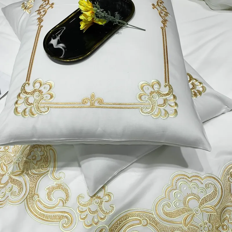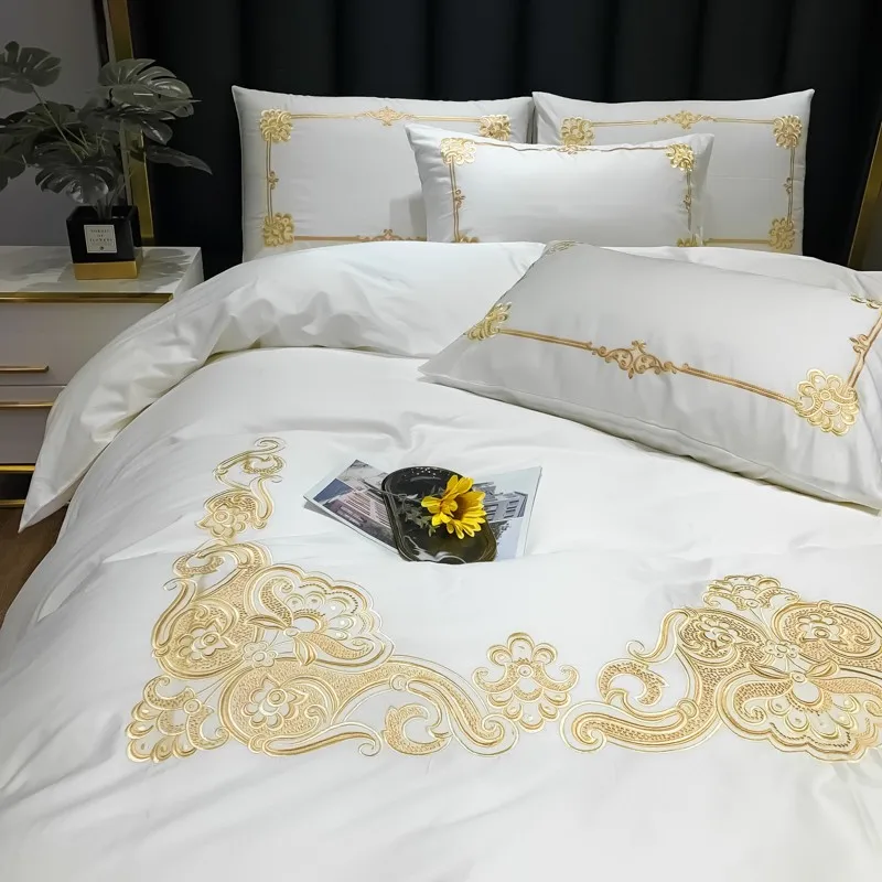 Product Name: Set Copripiumino Ricamato Chic Set Biancheria Da Letto Di Lusso In Cotone Bianco Blu 100% Naturale 1 Copripiumino 1 Lenzuolo E 2 Federe