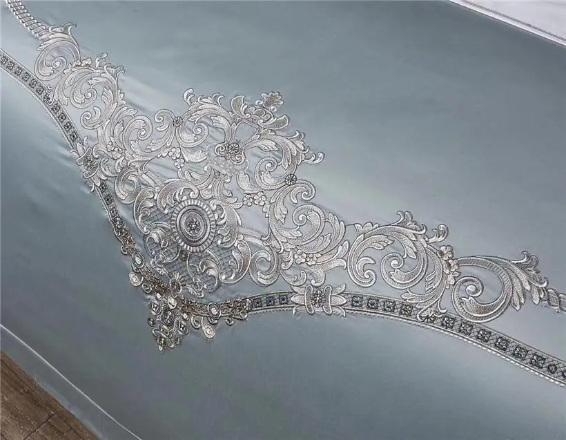 Product Name: J2Blue Grey 1000TC 100% Cotone Egiziano J Pezzi Set Copripiumino Con Ricamo Premium Queen King Size Lenzuolo Fodere Per Cuscino