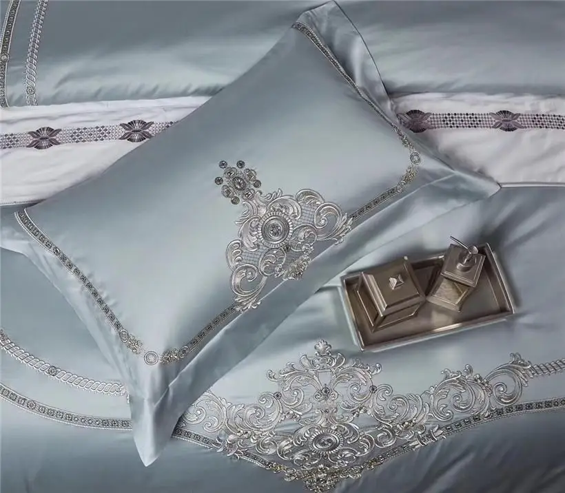 Special Offer J2Blue Grey 1000TC 100% Cotone Egiziano J Pezzi Set Copripiumino Con Ricamo Premium Queen King Size Lenzuolo Fodere Per Cuscino Discount (30%OFF) Today!