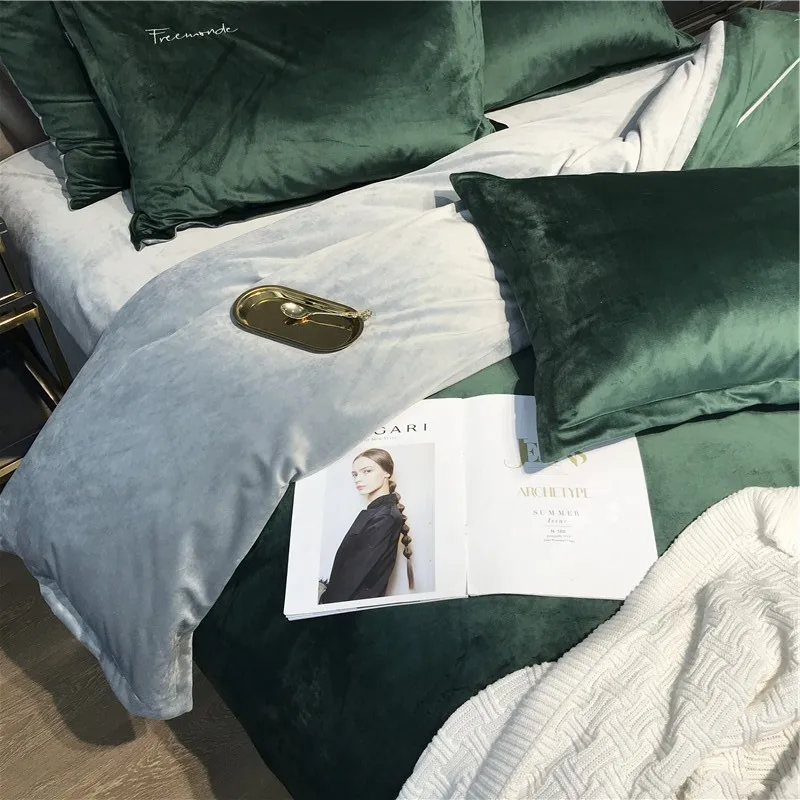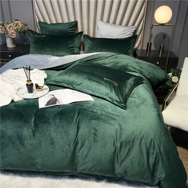 Special Offer Set Lenzuola Copripiumino In Velluto Pesante 4 Pezzi Queen King Soft Warm Premium Lussuoso Set Biancheria Da Letto Cravatte Con Cerniera, Verde Scuro Discount (30%OFF) Today!