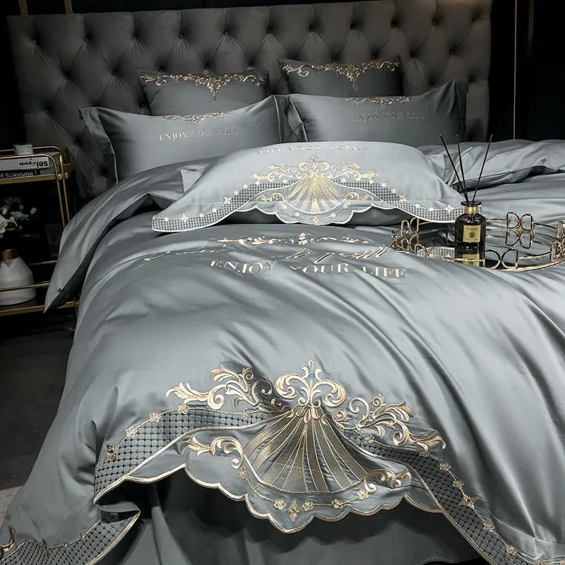 Special Offer Set Biancheria Da Letto Grigio Ricamato Di Lusso Queen King 4 Pezzi Copripiumino Morbido In Cotone Egiziano Set Lenzuola Set Copripiumino Con Cerniera Discount (43%OFF) Today!
