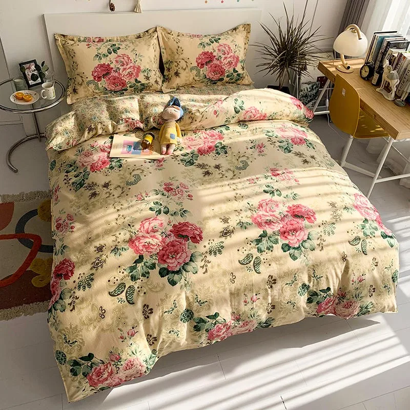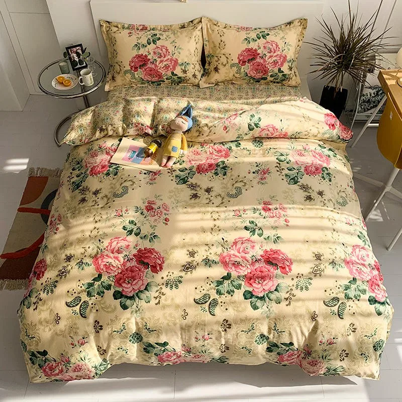 Product Name: Set Copripiumino Fiori Da Giardino Vintage Con Chiusura A Cerniera Set Biancheria Da Letto In Morbido Cotone Con Fiori Copripiumino Lenzuolo Matrimoniale Queen Size