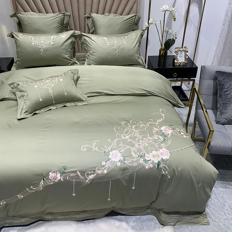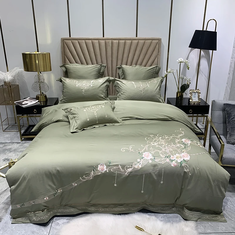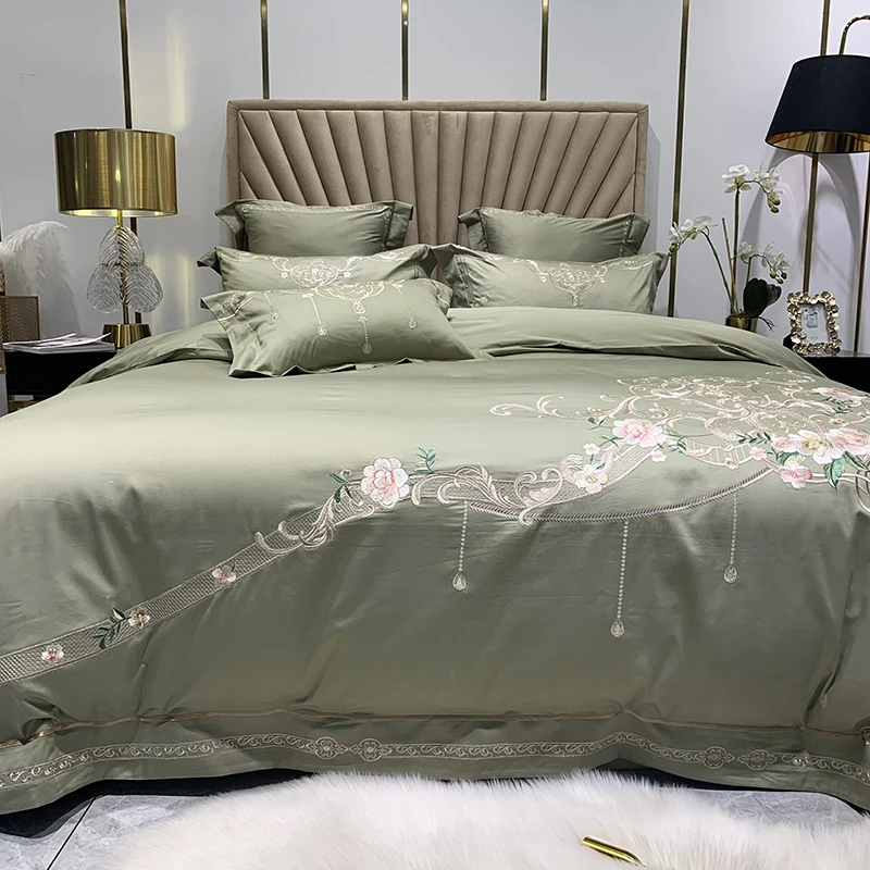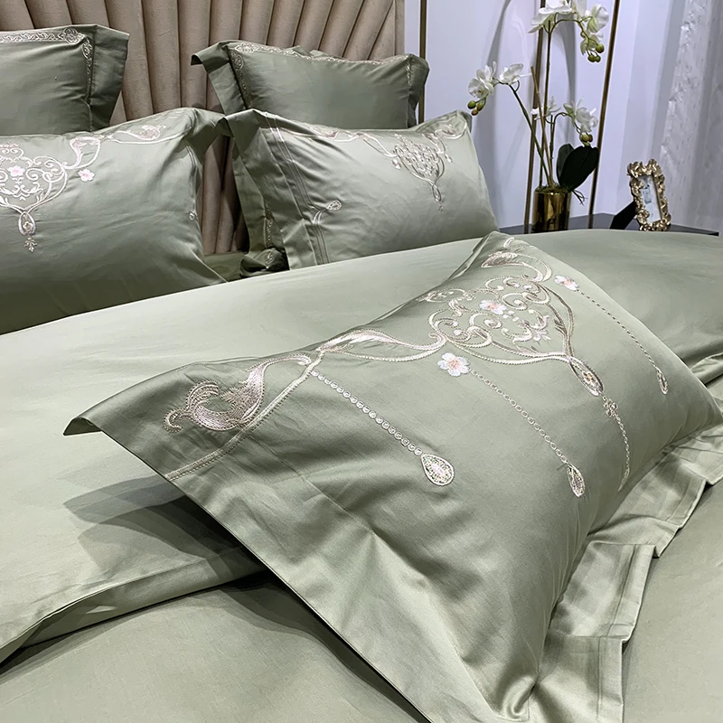 Product Name: Set Di Biancheria Da Letto In Cotone Egiziano Bianco Di Lusso 600TC Fiori In Stile Americano Ricamo Copripiumino Lenzuolo Federe Tessili Per La Casa