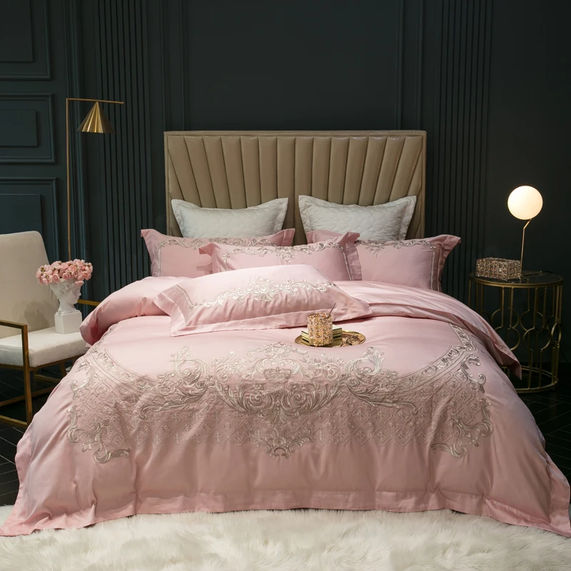 Product Name: Chic Ricamo 4 Pezzi Set Copripiumino 600TC Cotone Egiziano Set Biancheria Da Letto Morbido Di Fascia Alta Lenzuolo Federe Queen King Size 4 Pezzi