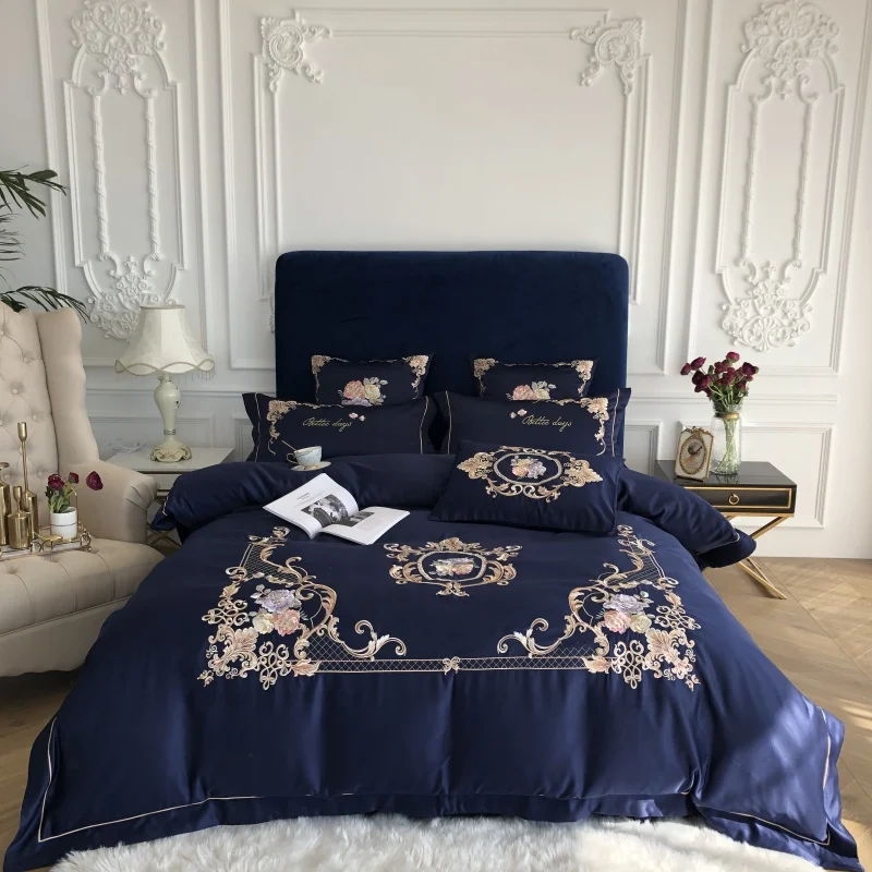 Product Name: Copripiumino Ricamato Di Lusso In Raso Di Seta Sintetica Set Di Biancheria Da Letto Classico Grigio Bianco Lenzuolo Federe Queen King Size 4 Pezzi