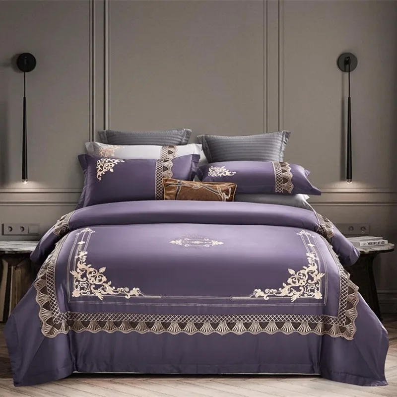 Special Offer Copripiumino Ricamo Viola Queen King 100% Egitto Cotone 4 Pezzi Set Copripiumino Biancheria Da Letto Copripiumino Ultra Morbido Set Lenzuola Discount (43%OFF) Today!