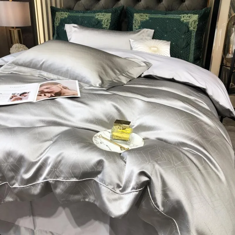 Special Offer Set Biancheria Da Letto Copripiumino Jacquard In Raso Di Seta Di Lusso Oro Argento Set Letto Matrimoniale King Size Set Lenzuola/lenzuolo Con Angoli Discount (55%OFF) Today!