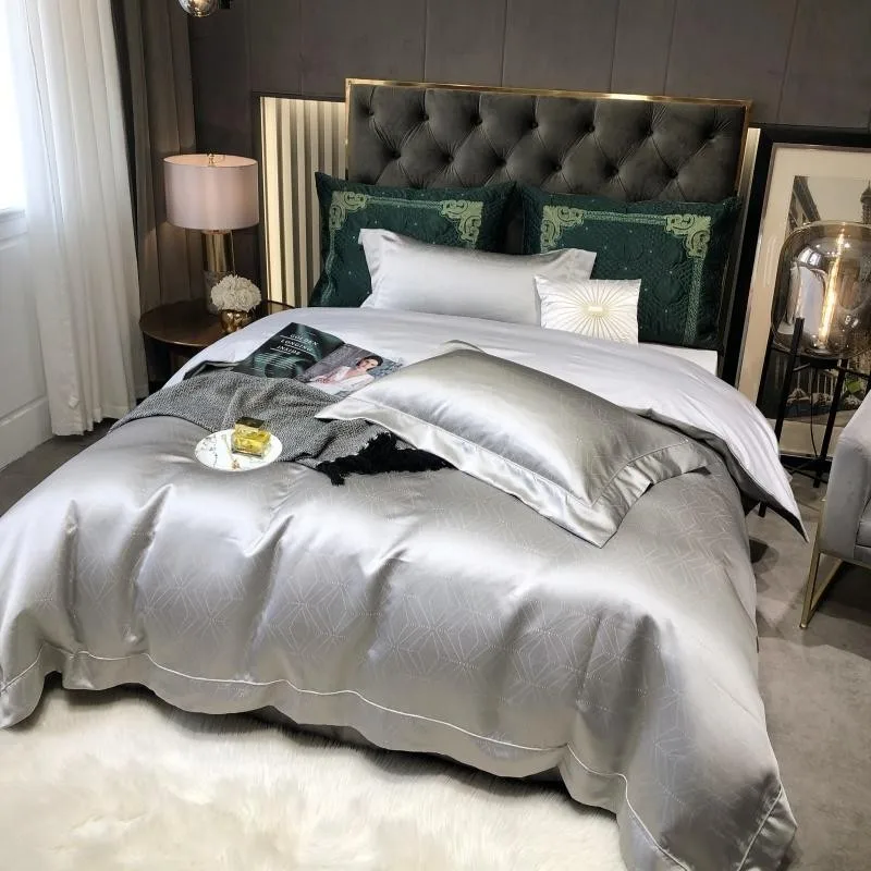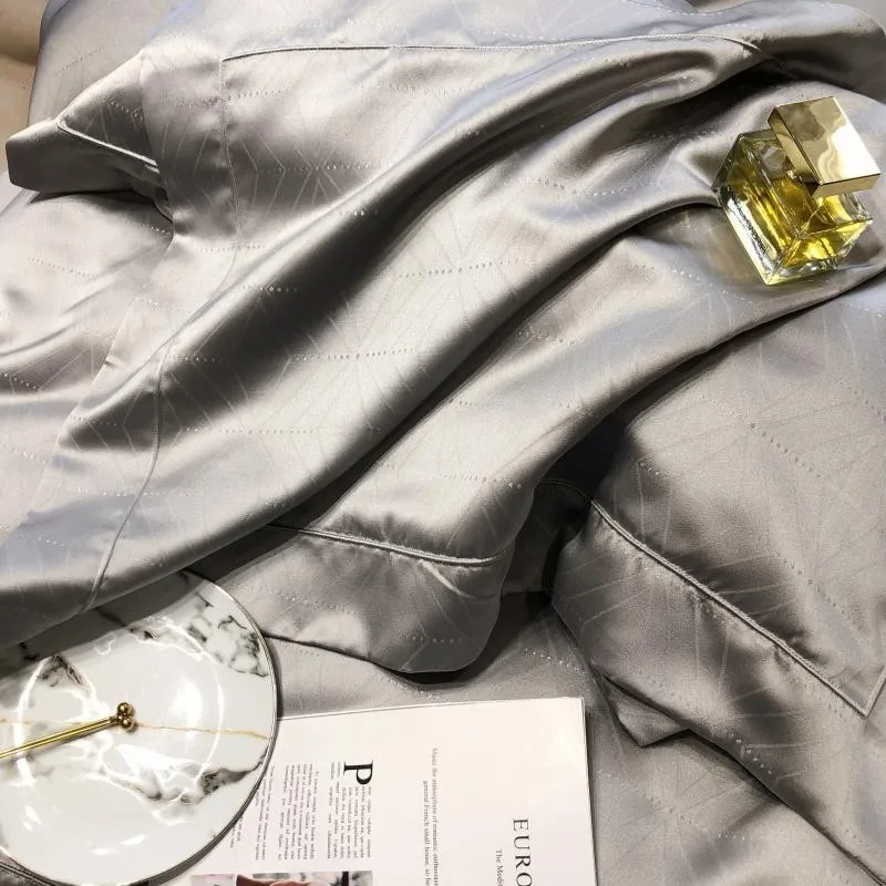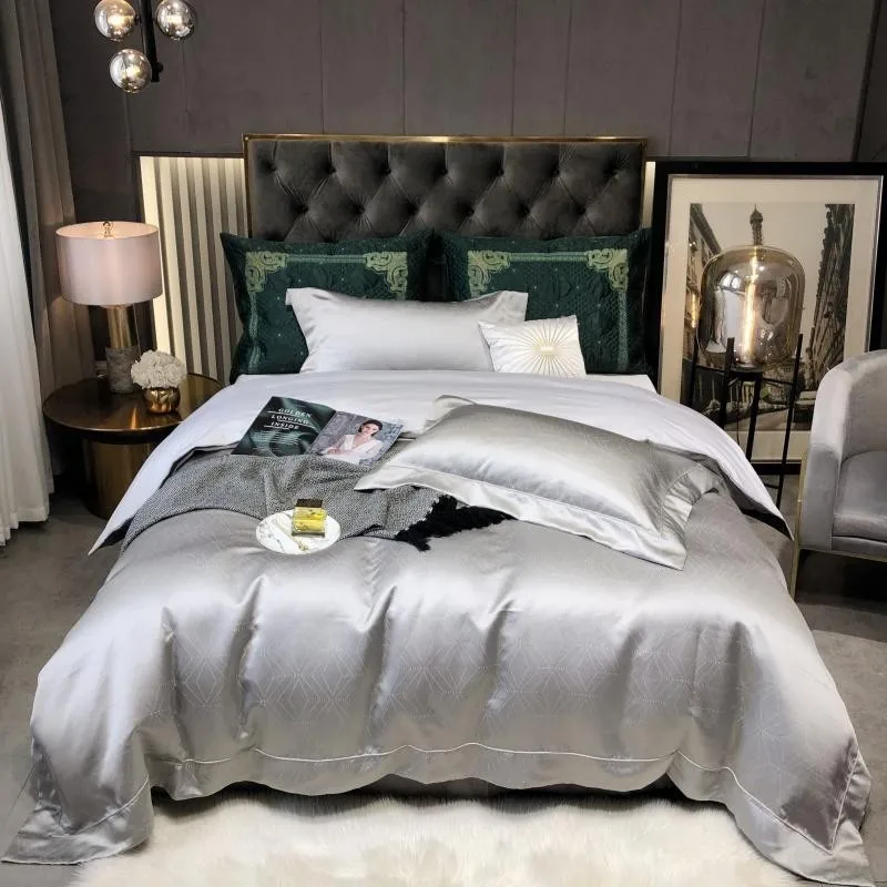 Product Name: Set Biancheria Da Letto Copripiumino Jacquard In Raso Di Seta Di Lusso Oro Argento Set Letto Matrimoniale King Size Set Lenzuola/lenzuolo Con Angoli