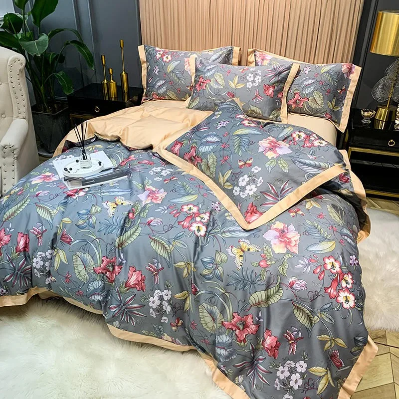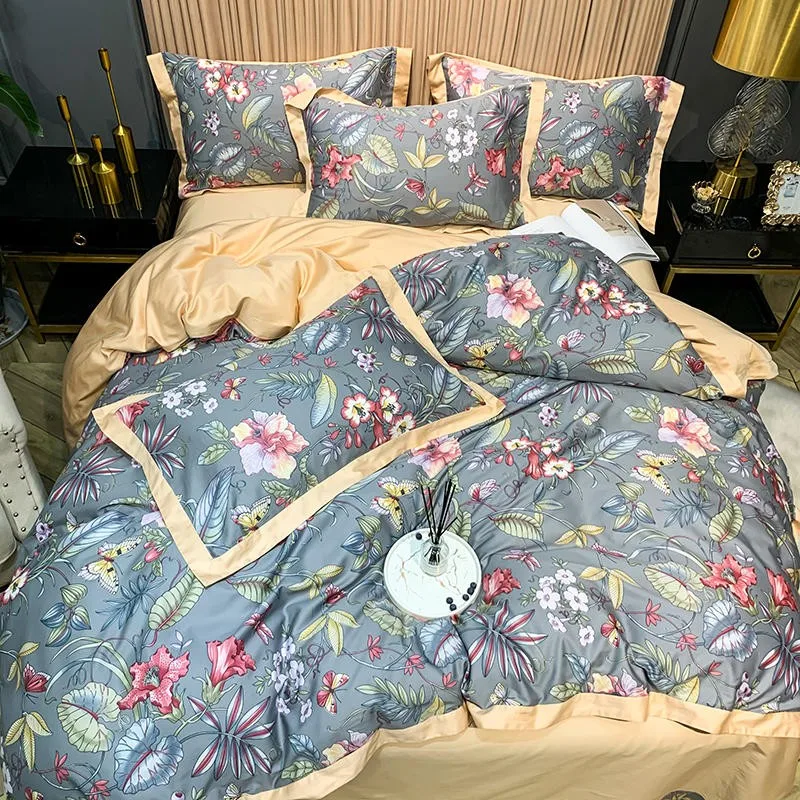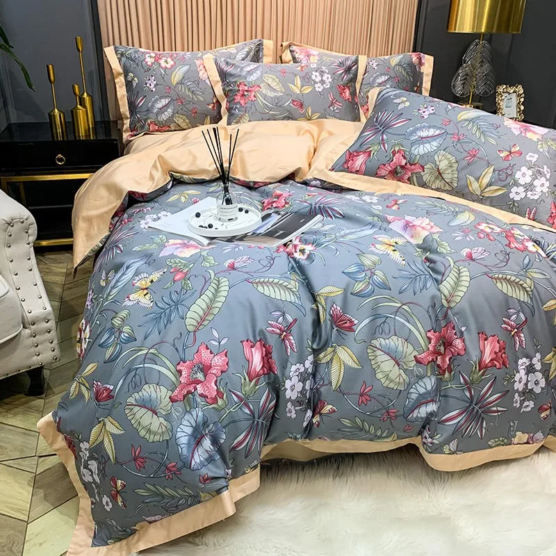 Product Name: Set Di Biancheria Da Letto Con Foglie Tropicali Copripiumino Con Fiori Vintage Copripiumino In Cotone Egiziano Lenzuolo Federa Queen King Size 4 Pezzi
