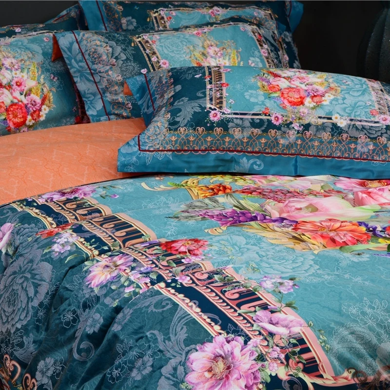 Product Name: Set Copripiumino Shabby Chic Flowers Blossom Queen King Size 4 Pezzi Set Lenzuola In Cotone Satinato Vibrante Boho Resistente Allo Sbiadimento
