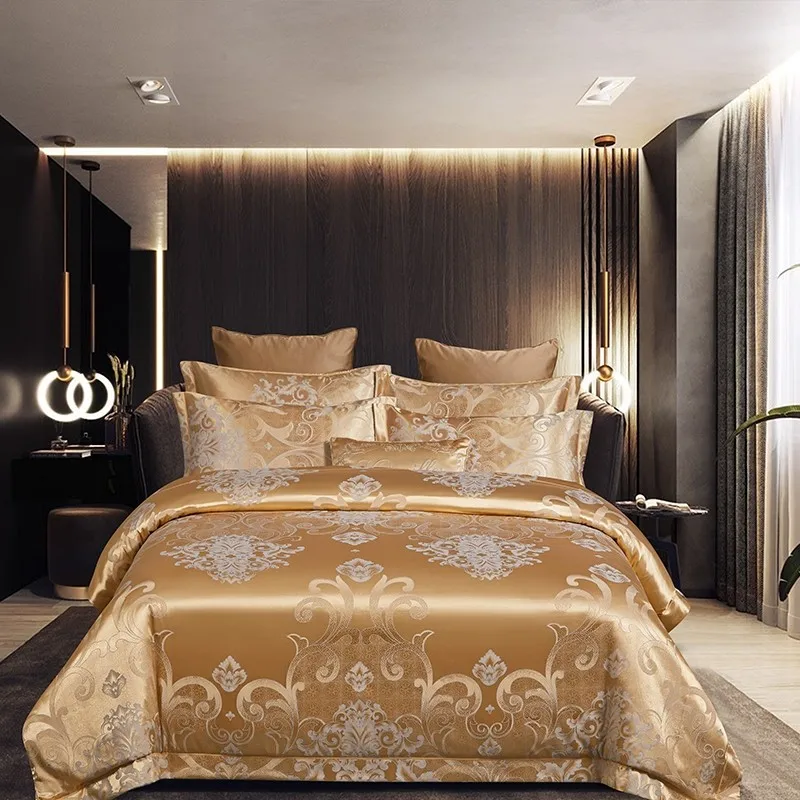 Special Offer Lusso 4 Pezzi Biancheria Da Letto In Raso Morbido Jacquard Grigio Dorato Set Copripiumino Con Chiusura A Cerniera Federe Lenzuolo Discount (43%OFF) Today!