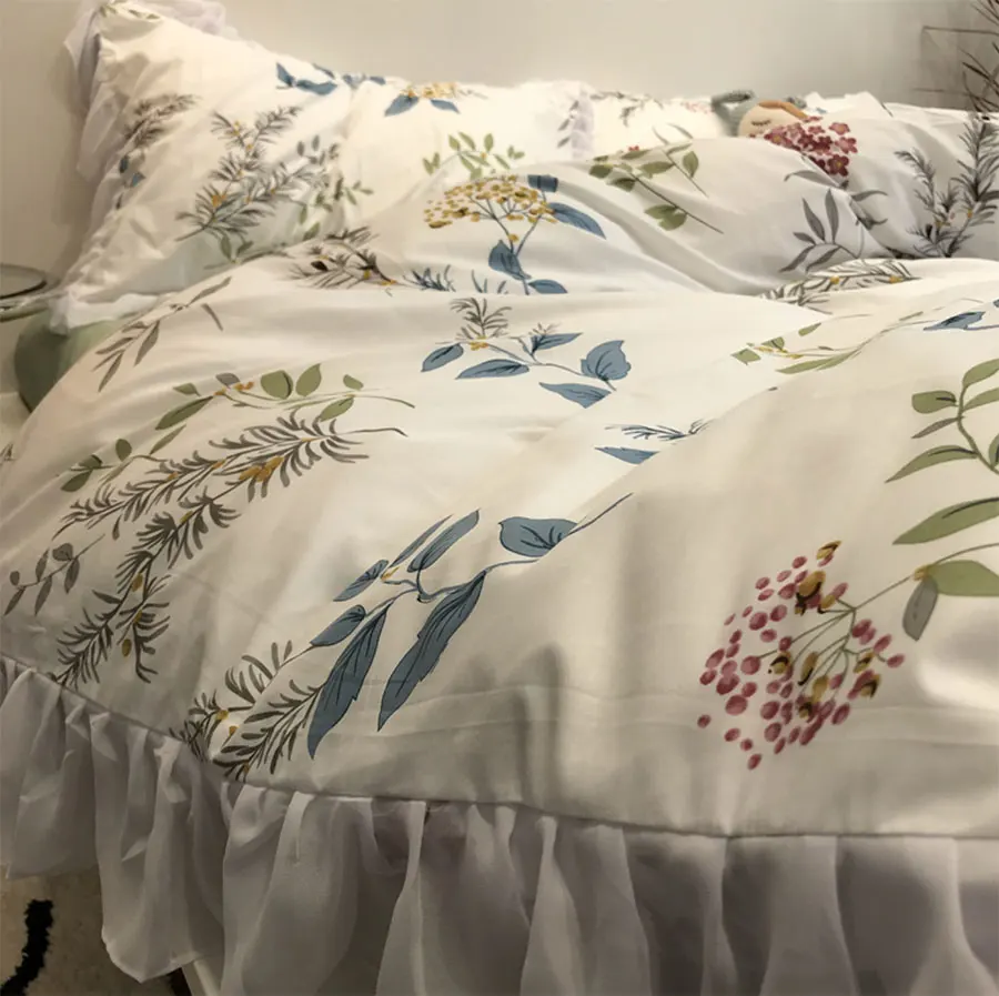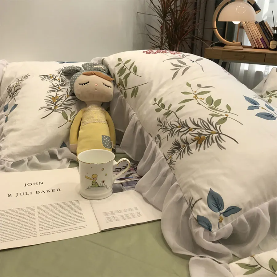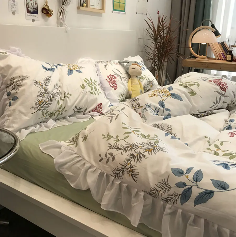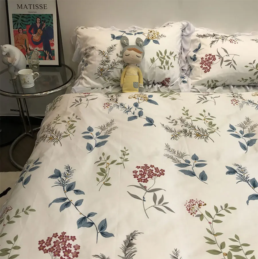Product Name: Set Biancheria Da Letto Fiore Pianta Pastorale Americana Europea Ragazza, Cotone Twin Full Queen Tessili Per La Casa Lenzuolo Federa Copripiumino