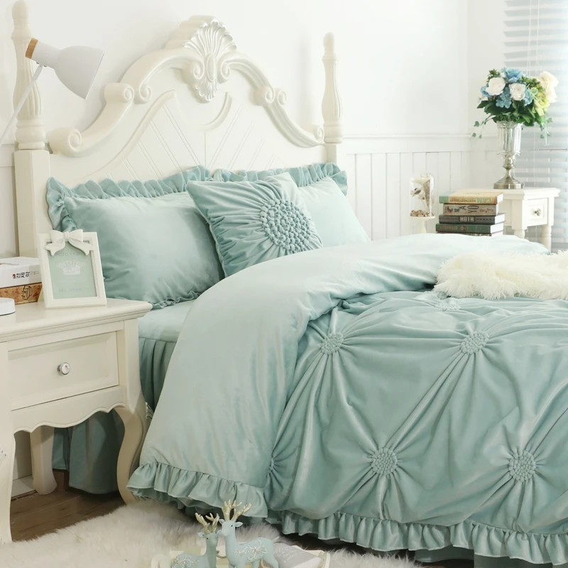 Special Offer Set Di Biancheria Da Letto Di Lusso Pieghettato A Mano Set Di Copriletto Invernale In Pile Spesso Set Di Copripiumini Per Gonna Da Letto Matrimoniale King Size Completo Federa Discount [NEW!!] Today!
