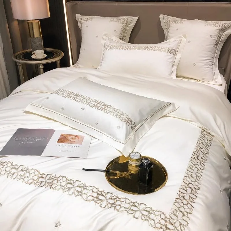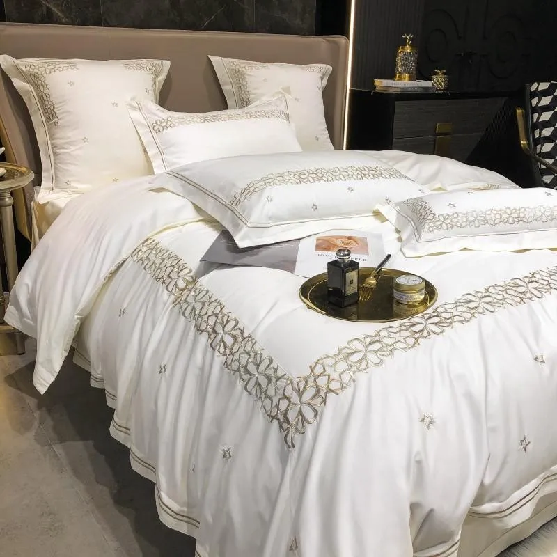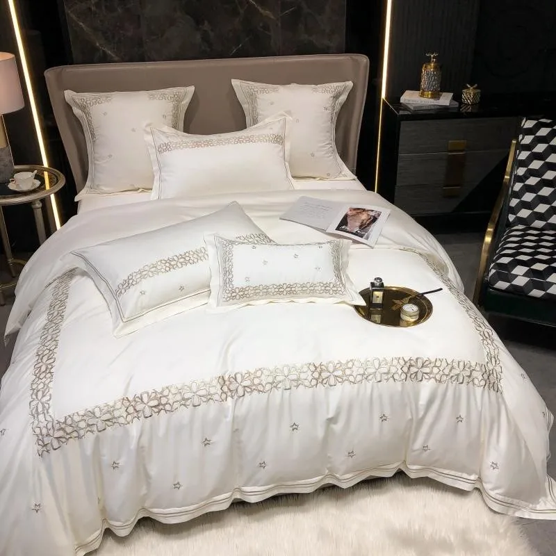 Product Name: Set Copripiumino In Cotone Egiziano 4 Pezzi King Queen Size 4 Pezzi Set Biancheria Da Letto Ricamo Argento Dorato Bianco Con Federe Lenzuolo